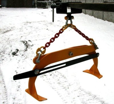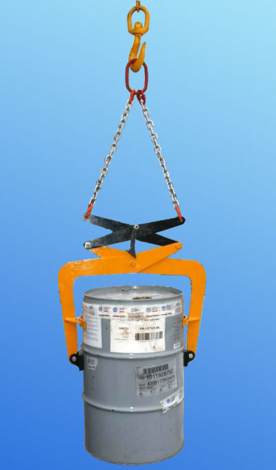 Uchwyt szczękowy półautomatyczny do podnoszenia i transportu beczek metalowych o średnicy 360mm.