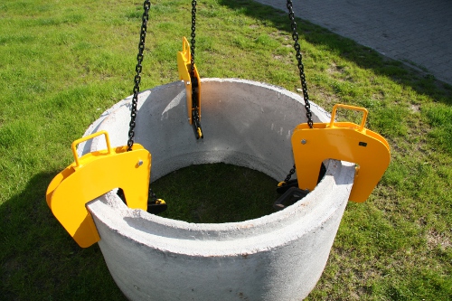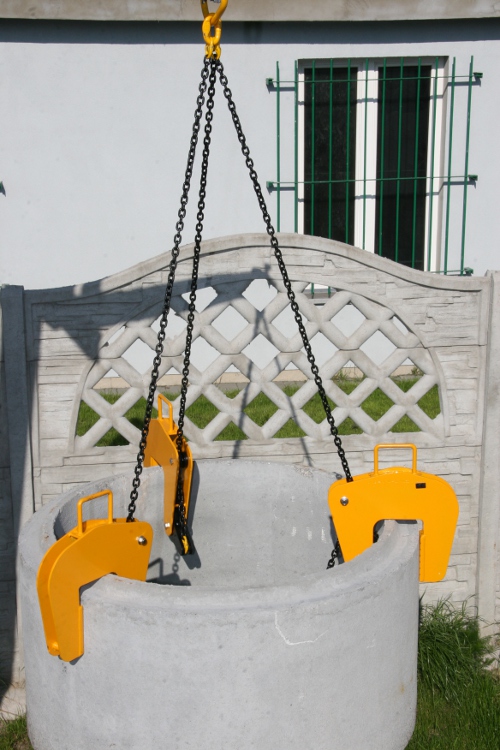 Zawiesia 3-cięgnowe kl.8.8. L-2m zakończone uchwytami do kręgów betonowych Typ UBX-G. Komplet stanowią 3 uchwyty + zawiesie.