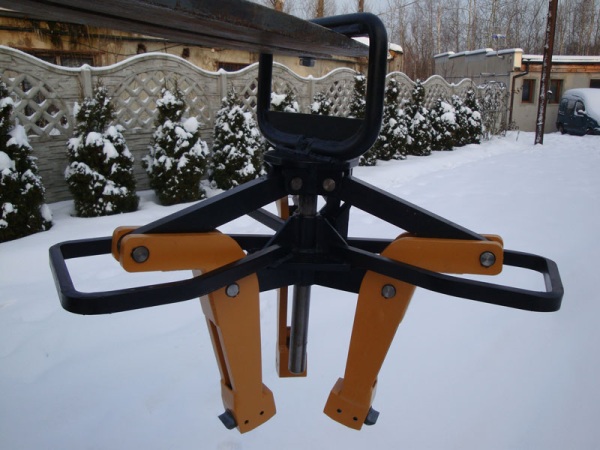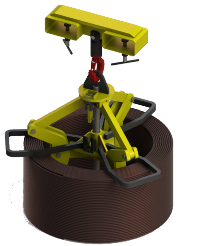 Automatyczny uchwyt do podnoszenia i transpotu zwojów drutu w kręgach o udźwigu 3000kg i zakresie chwytania średnicy wewnętrznej od fi 500 do fi 800mm. Uchwyt przystosowany jest do współpracy z wózkiem widłowym. Szczęka dociskowa uchwytu wyposażona jest w wymienny pazur wykonany ze stali hartowanej o wysokiej wytrzymalości. Stabilan i prosta konstrukcja a także niewielkie gabaryty pozwalają na bezpieczną i wydajną pracę. W zamówieniu należy podać wymiar wideł szerokość i grubość.