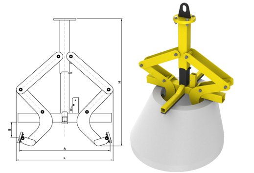 Uchwyt przeznaczony do podnoszenia i transportu zwężek betonowych. Konstrukcja prosta i łatwa w zastosowaniu .