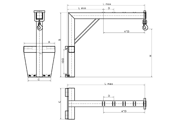 | Typ | DOR w kg | ISO | Lmin | Lmax | A | B | C | D | Waga w kg |