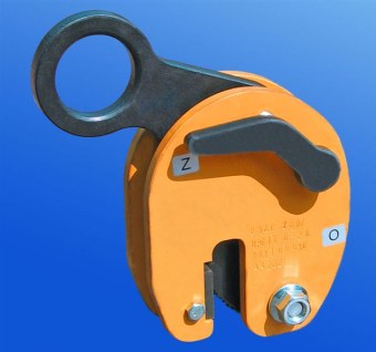 | Uchwyt do transportu kształtowników wyposażony w szczęki zestali hartowanej. Typ UPD-1 DOR-1t i zakresie chwytania 3-20 mm. Wstępny docisk za pomocą rygla |