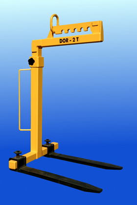 Uchwyt do transportu palet z ręcznym wyważaniem środka ciężkości DOR-2t. Wysokoć regulowana od 1300 do 2000m. Rozstaw wideł regulowany.