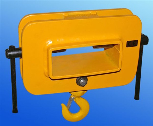 Uchwyt widłowy wyposażony jest w hak obrotowy, co umożliwia mu podnoszenie różnych ciężarów, stanowi on wyposażenie wózków widłowych.