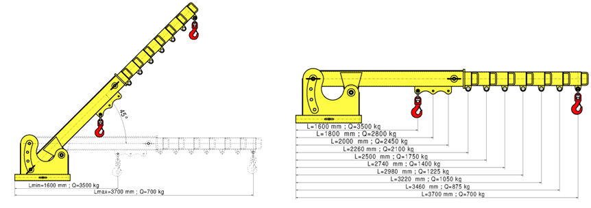 Trawersa przeznaczona jest do współpracy z wózkiem widłowym. Wysięgnik o regulowanej długości i kącie nachylenia powoduje, że jest ona bardzo funkcjonalna i przydatna we wszelkich pracach przeładunkowych. Udźwig trawersy zależy od długości wysięgnika L-1,6m = 3500kg, L-3,7m = 700kg.