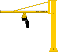 Lekka, zwarta konstrukcja stalowa. Zasięg obrotu 270o. Parametry techniczne dobierane są do potrzeb i wymagań Klienta. Wyposażony jest we wciągnik ręczny bądź elektryczny. Obrót wysięgnika ręczny. Malowanie antykorozyjne: podkład oraz kolor żółty.